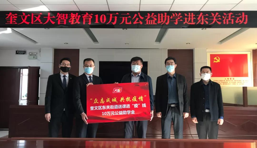 在集團(tuán)團(tuán)委的領(lǐng)導(dǎo)下,大智濰坊區(qū)域牢記使命勇?lián)?dāng),堅(jiān)守公益奉獻(xiàn)的信念,組織開展“黨團(tuán)公益 大智先行”系列活動,捐贈“希望小屋”3家;在全面抗擊新冠疫情中,積極踐行社會責(zé)任,發(fā)起送課進(jìn)“疫”線公益助學(xué)活動,捐贈助學(xué)金10萬元。